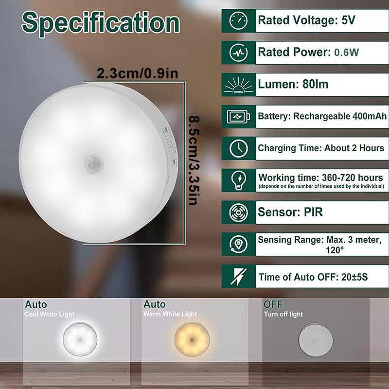 색깔변경 USB 충전식 센서등